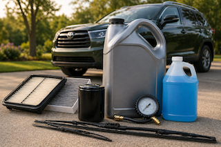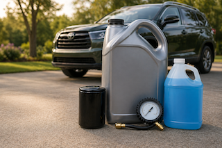 Our Standard Oil Change service includes up to 7 quarts of fully synthetic motor oil, oil filter replacement, tire pressure check, and windshield washer fluid top off.